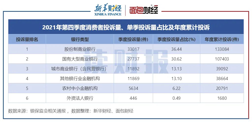 原標題: 【讀財報】銀行業(yè)消費者投訴透視:銀保監(jiān)會2021年處理逾34萬件投訴 股份制行被投訴量居首