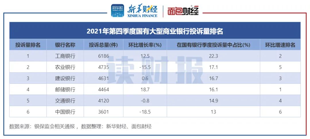 圖4:國有大型商業(yè)銀行2021年第四季度消費者投訴總量排名