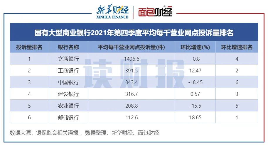國有銀行被投訴量排名:工行總量大、郵儲增速快、交行密度高