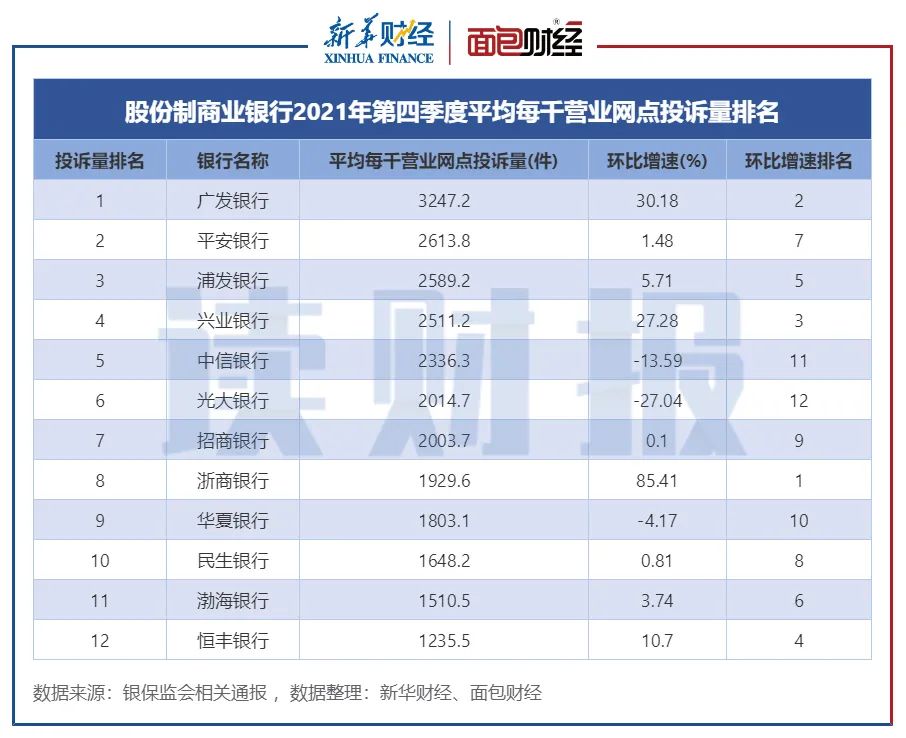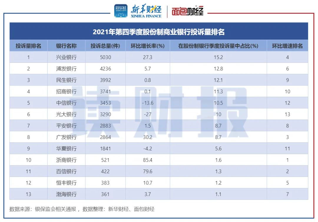 股份銀行被投訴量排名:光大年度最高、興業(yè)季度最高、廣發(fā)密度最大