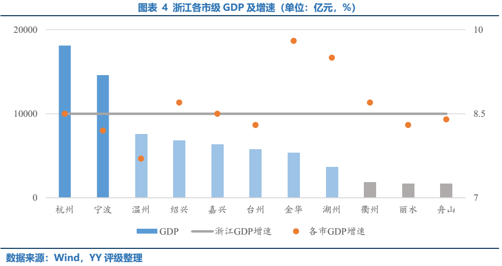 浙江省外向經(jīng)濟(jì)活躍,GNP一度反超GDP,民營、小微經(jīng)濟(jì)高度活躍,為浙江省帶來旺盛的信貸需求,大中小銀行遍地開花,錯位競爭拉動區(qū)域銀行盈利水平。