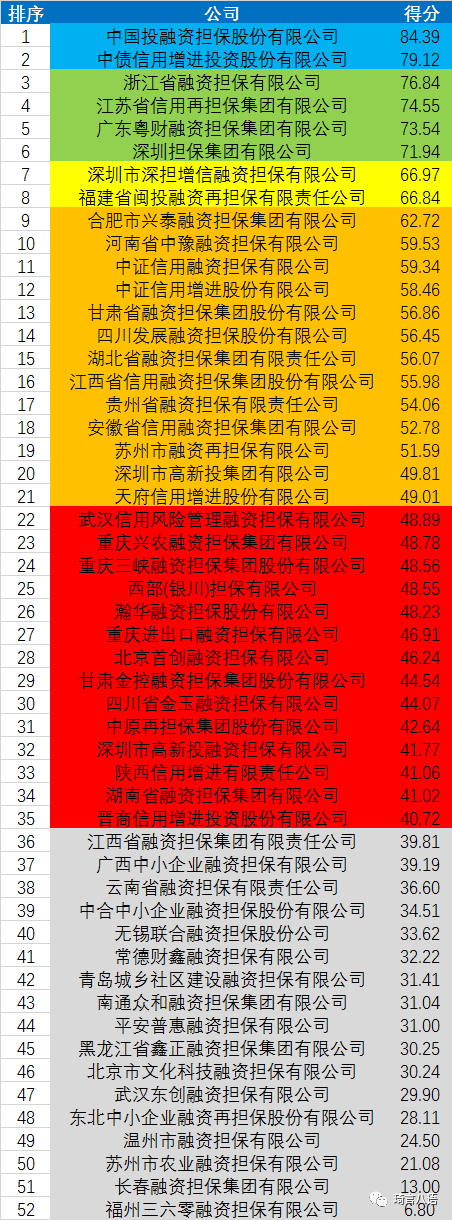 最近開(kāi)始學(xué)習(xí)擔(dān)保行業(yè),初步對(duì)有債券擔(dān)保業(yè)務(wù)的擔(dān)保公司進(jìn)行了打分、排序及分檔。今晚簡(jiǎn)單聊兩句,拋磚引玉。