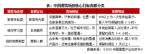 冰雪場地主要涵蓋滑冰場與滑雪場等形態(tài),由于當(dāng)前新增滑冰場多為商業(yè)綜合體形式,基本交由冰場品牌方進(jìn)行承租運(yùn)營(少數(shù)由商業(yè)體自建并自主運(yùn)營,如華潤旗下的冰紛萬象系列),所以暫不在本文的參照范圍內(nèi)。國內(nèi)滑雪場按核心目標(biāo)客群可分為三類:旅游體驗型、城郊學(xué)習(xí)型及目的地度假型,據(jù)《2020中國滑雪產(chǎn)業(yè)白皮書》數(shù)據(jù)顯示三類雪場占比75%、22%及3%,新建雪場中目的地滑雪度假區(qū)呈上升趨勢,而旅游體驗型滑雪場則出現(xiàn)下滑趨勢。