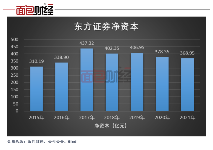 觀察數(shù)據(jù)可得,2015年至2017年,東方證券先后通過A股及H股首發(fā)上市,以及A股定增募資補(bǔ)充流動(dòng)性,公司的凈資本規(guī)模在2017年年末達(dá)到上市以來最高值。隨后,在公司未再進(jìn)行股權(quán)融資的4年間,公司的凈資本呈整體下滑趨勢。