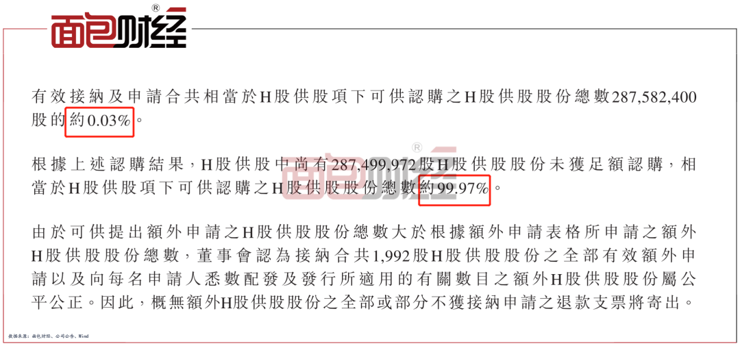港股投資者參與供股者寥寥無幾,公司僅收到5份有效接納及申請(qǐng)。獲得有效認(rèn)購的股數(shù)僅占H股供股總數(shù)的約0.03%。這意味著約99.97%的供股未獲認(rèn)購。