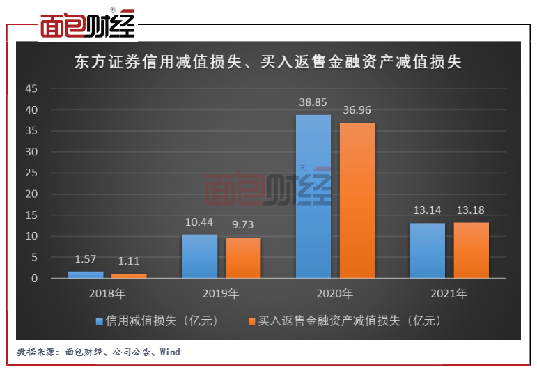 2021年,東方證券的信用減值損失為13.14億元,金額位居41家上市券商第二,其中買入返售金融資產(chǎn)減值損失13.18億元。研究發(fā)現(xiàn),買入返售金融資產(chǎn)持續(xù)為公司確認(rèn)信用減值損失的主因。