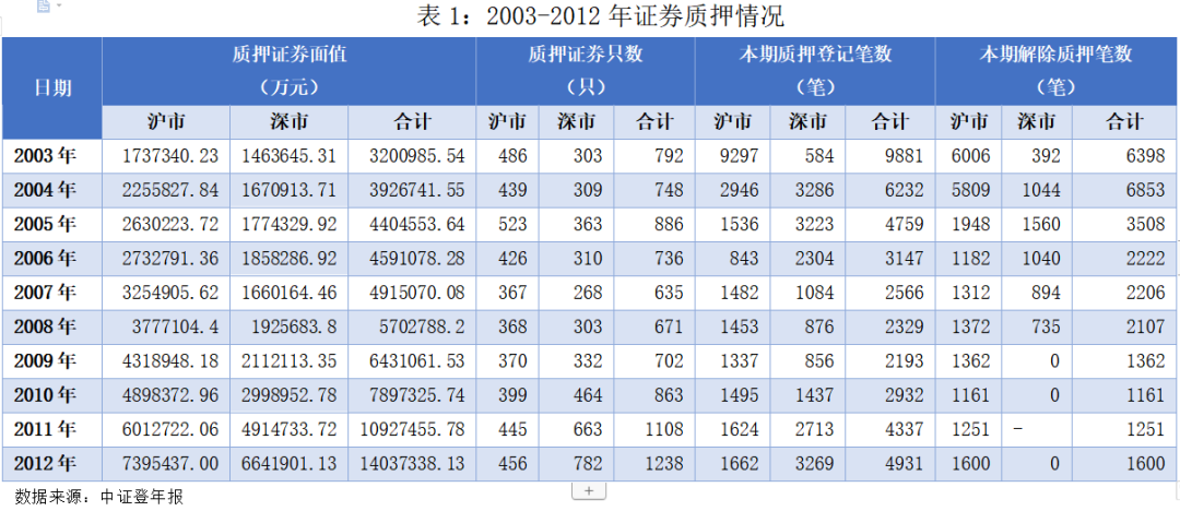 由上表可以看出滬市的質押量和質押規模總體上略多于深市,但2011、2012深市證券質押數量大幅上漲。這時候市場上的股票質押基本都屬于場外質押,股票質押相當于貸款的一種增信手段。