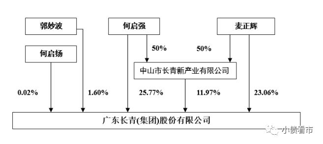 從股權(quán)結(jié)構(gòu)看,何啟強(qiáng)和麥正輝作為一致行動(dòng)人,是長(zhǎng)青集團(tuán)的實(shí)際控制人,二人直接持股比例分別為25.77%和23.06%。