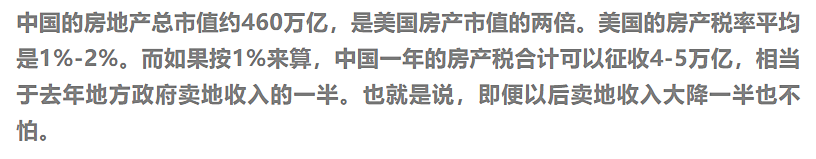 如果真的按這樣的說法,北上深,隨隨便便一套房子價(jià)值600萬,意味著大家隨隨便便要交6~12萬的房產(chǎn)稅!