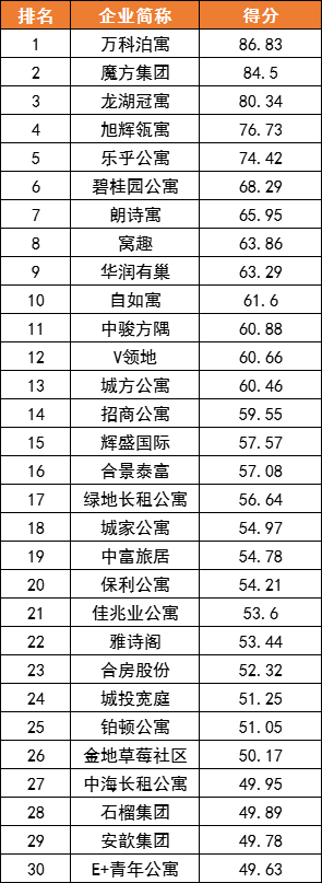 2021年集中式長租公寓企業(yè)運(yùn)營力30強(qiáng)