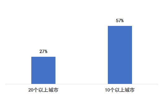 從布局城市來看,TOP30集中式長租公寓企業(yè)中有57%的企業(yè)已進(jìn)駐10個以上城市,27%的企業(yè)進(jìn)駐城市超過20個。