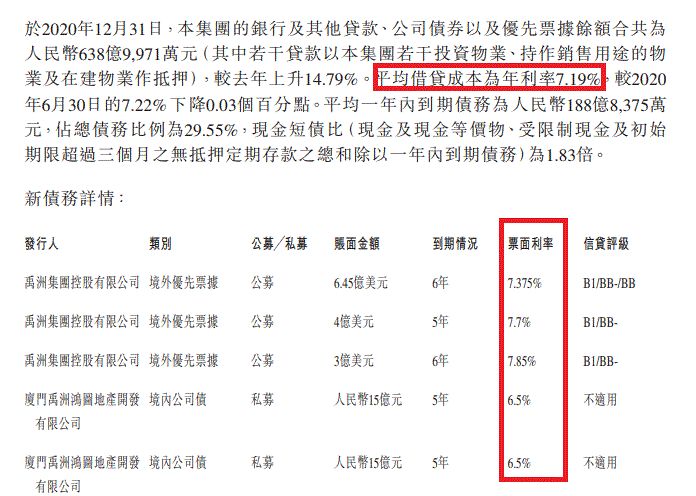 根據(jù)禹洲集團2020年的財報披露,2020年末,各種有息負債600多億元,比2019年末上升14.79%。