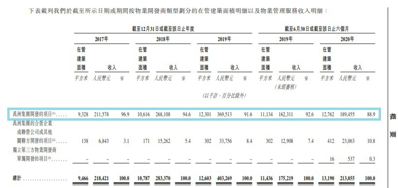 毫無疑問,禹佳生活服務管理的物業(yè),截至6月有1300多萬平米,主要是禹洲集團開發(fā)的。如下圖。