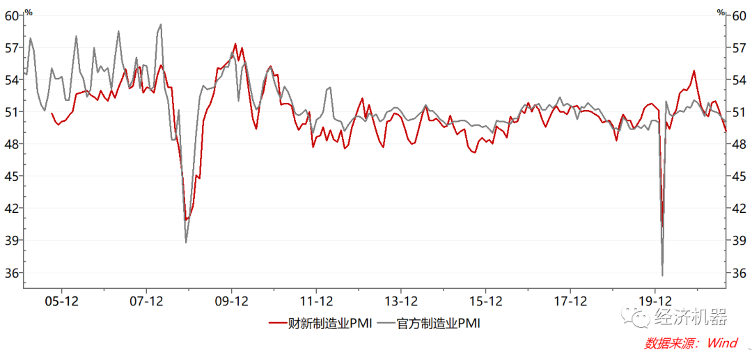 圖1、制造業(yè)PMI:官方和財新