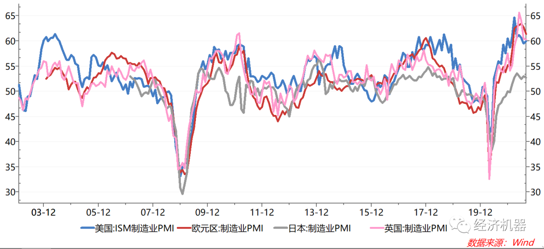 圖6、主要海外經(jīng)濟體制造業(yè)PMI