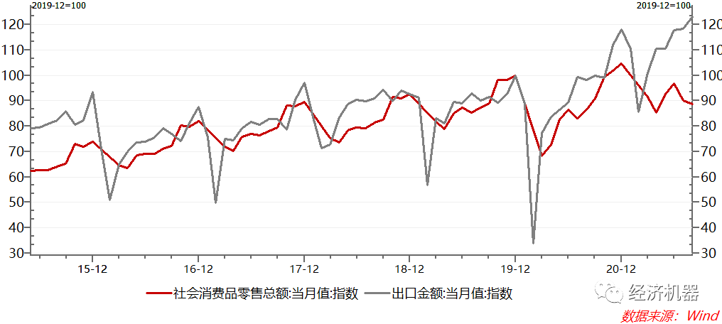 圖10、社會零售銷售和出口:當月數(shù)據(jù)
