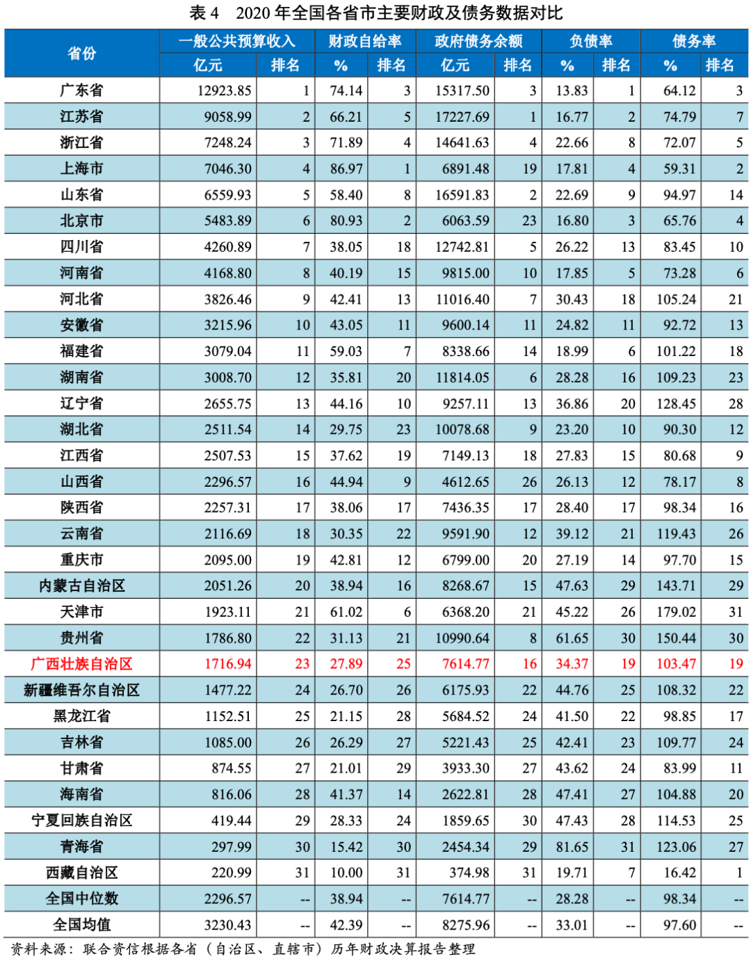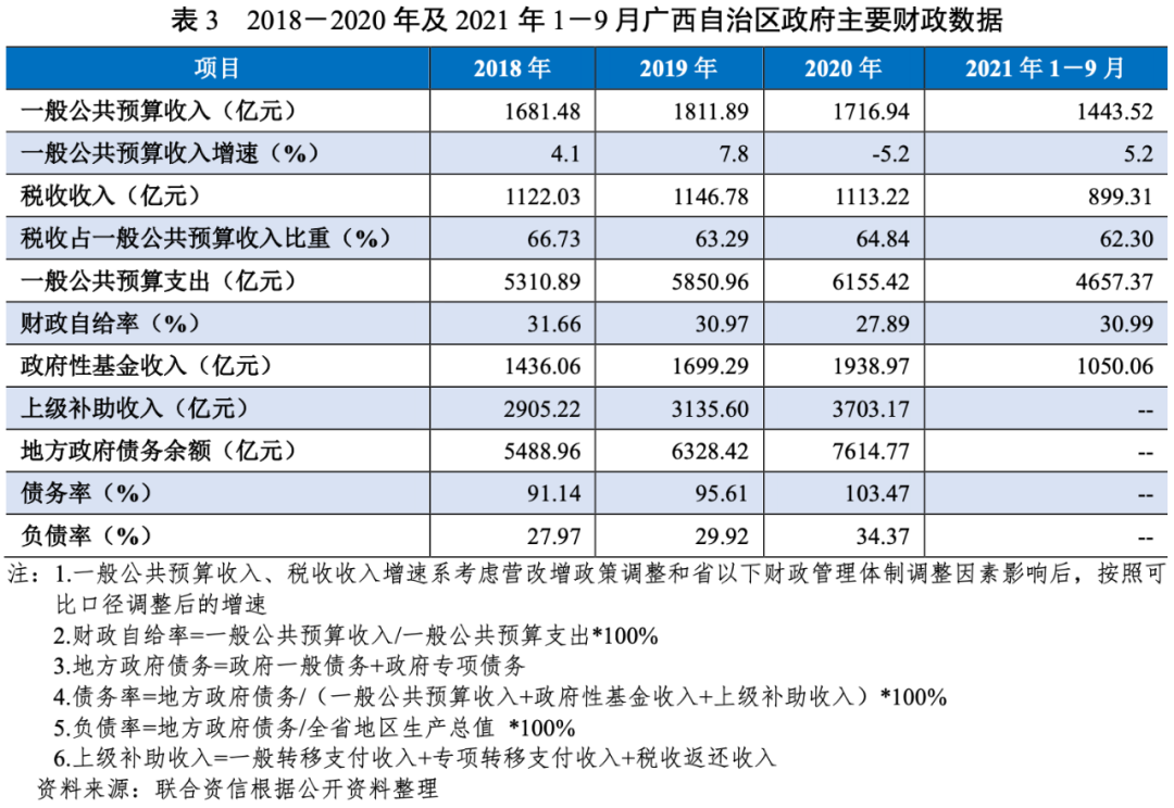 2.廣西自治區(qū)政府財政實力及債務(wù)情況