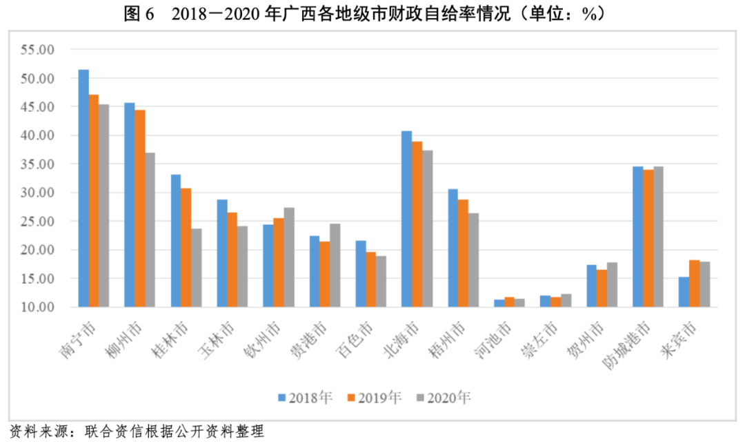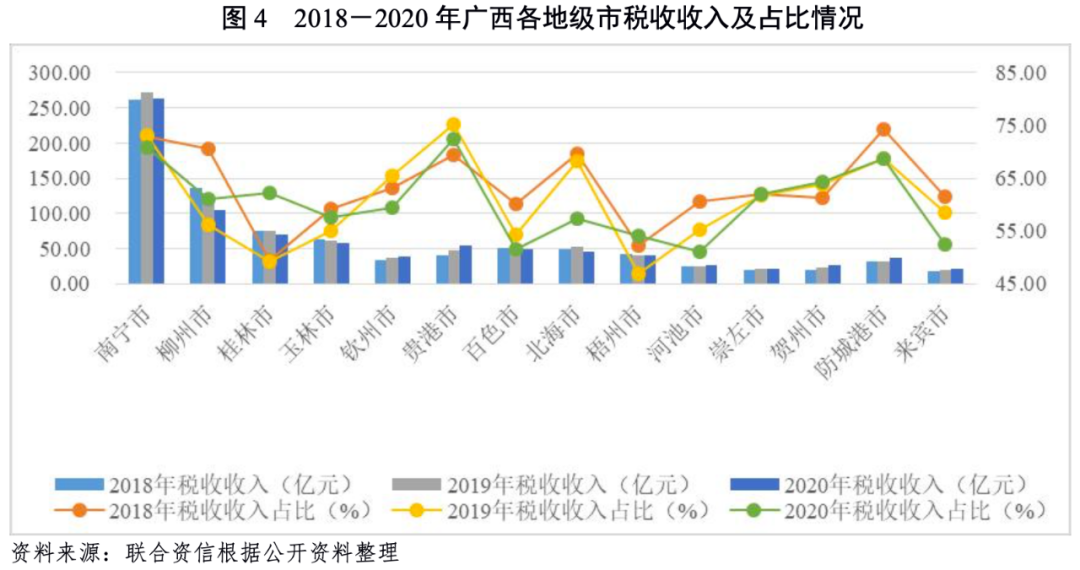 3.廣西各地級市財政收入對發(fā)債城投企業(yè)債務(wù)的支持保障能力