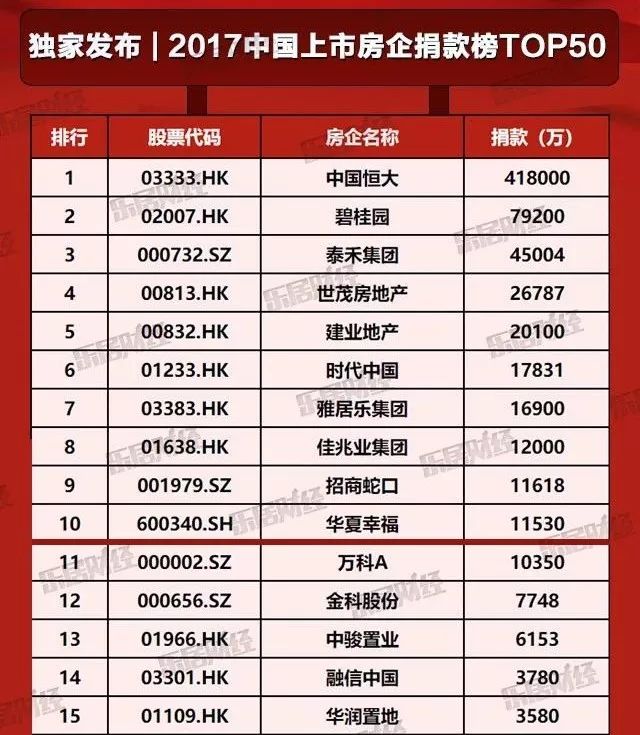 近日發(fā)布了《2017中國上市房企捐款榜TOP50》,榜單上的排名和捐款額饒有趣味,勾起了內(nèi)幕君對房企慈善行為的好奇。