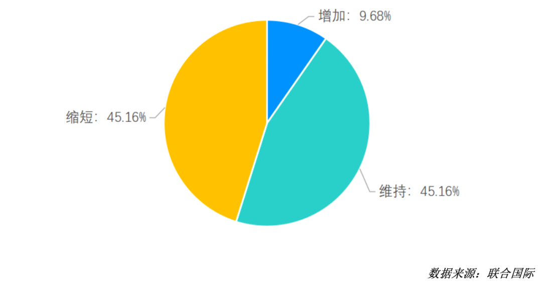 在未來12個月內,極少數受訪者(9.7%)計劃延長其投資組合的年期。45.2%的受訪者將維持其投資組合年期,相同人數的受訪者將縮短投資組合的年期。(見附表1)。
