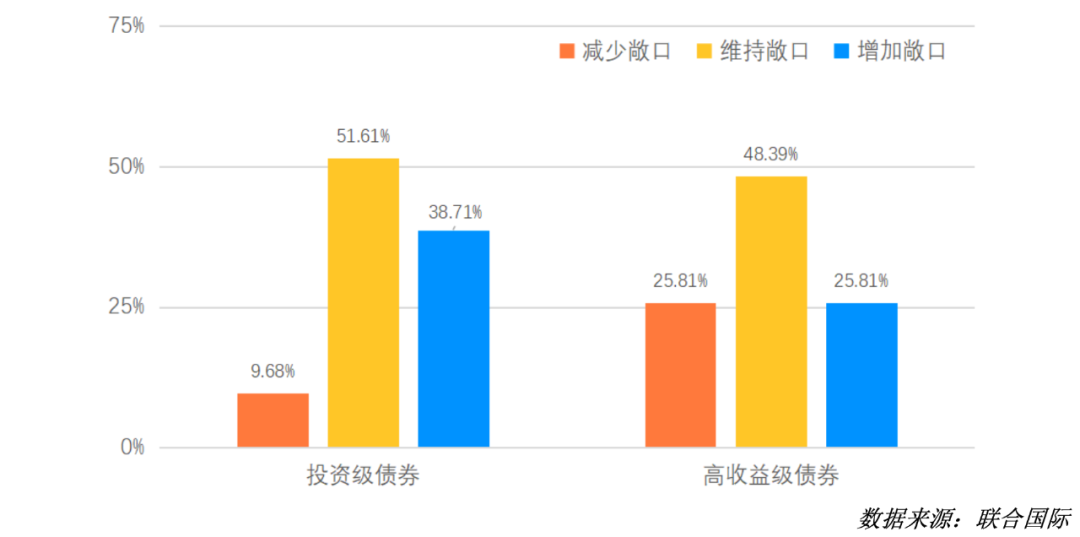 對于投資級債券,大多數受訪者計劃維持對所有行業的敞口。只有少數受訪者計劃減少他們在國企、銀行和非銀的敞口。大多數受訪者計劃在未來12個月內增加國企的敞口(見附表5)。