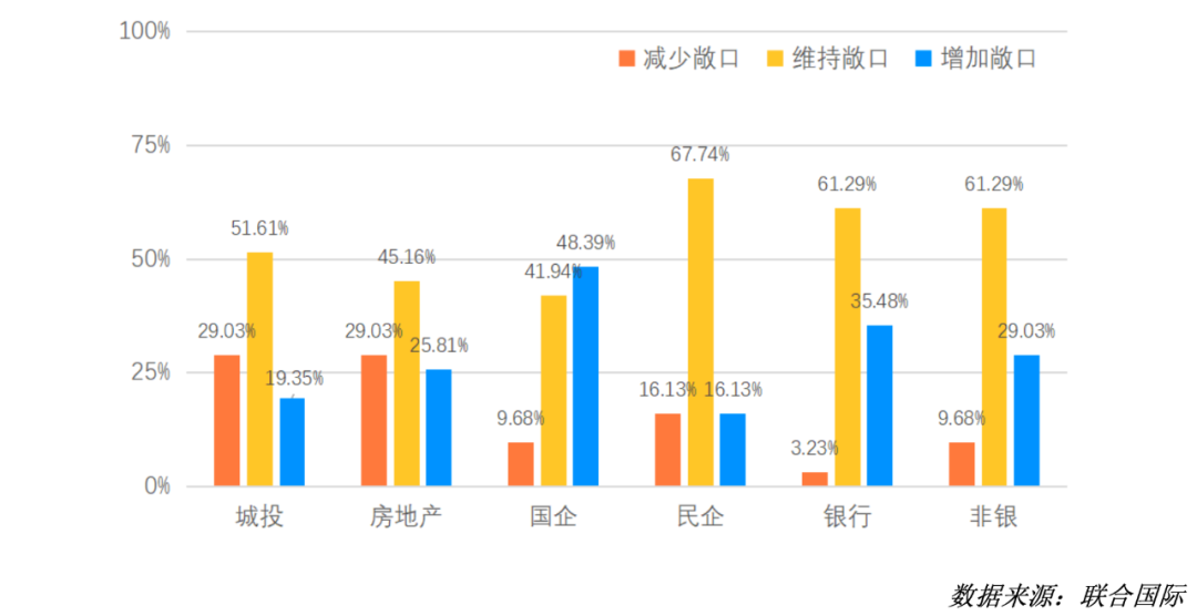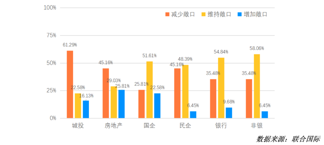 對于高收益級債券,大多數受訪者不打算增加任一行業的敞口。在城投和房地產行業方面,大多數受訪者傾向減少其風險敞口(見附表6)。