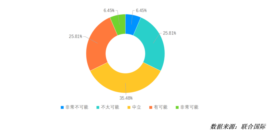 鑒于近來房地產行業的一系列違約事件,受訪者被問及是否愿意重返中國房地產高收益美元債券市場。收集到的回答非常對稱。有相同數量的受訪者表示可能和不太可能重返該市場。他們中的大多數人對他們會否重返市場持中立態度(見附表 7)。