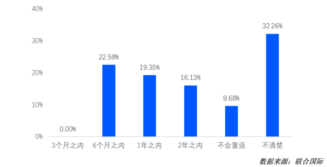 沒有受訪者認為自己會在短期內(即 3 個月內)重返中國房地產高收益美元債券市場。但其中41.9%的受訪者表示將在一年內重返。值得注意的是,部分受訪者(32.3%)不確定何時會重返(見附表8)。
