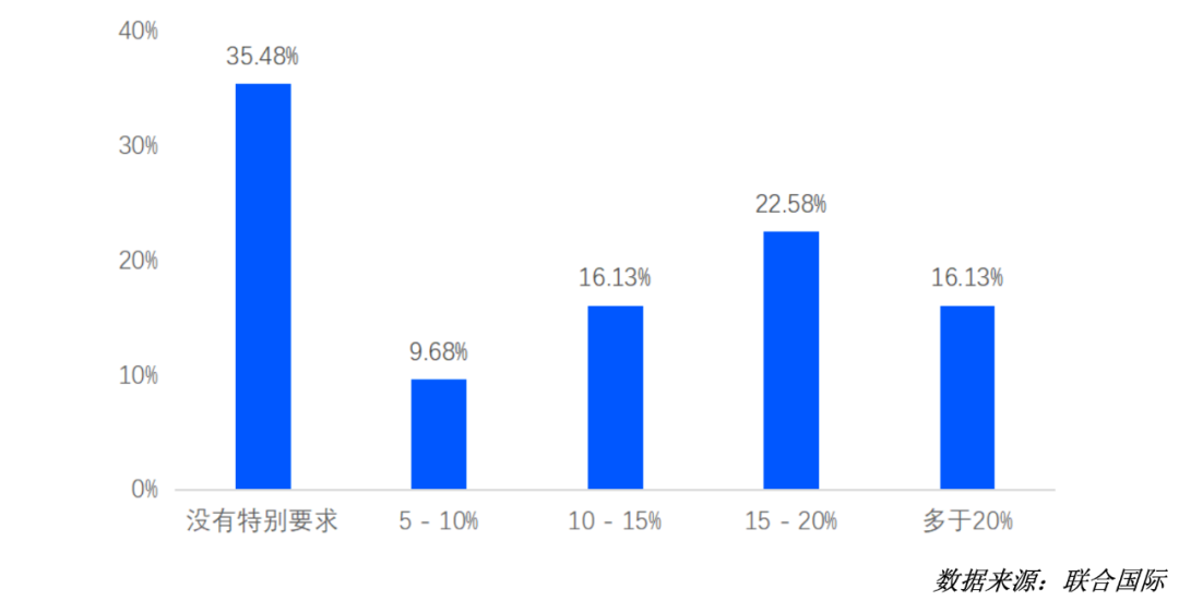 如果受訪者要回歸中國房地產高收益美元債券市場,不到 10% 的受訪者只要求適中水平的年回報率,為 5-10%。理所當然的有 54.8% 的人要求高回報率(超過 10%)。然而,他們中的一大部分人對要求的回報率沒有特別偏好(見附表9)。
