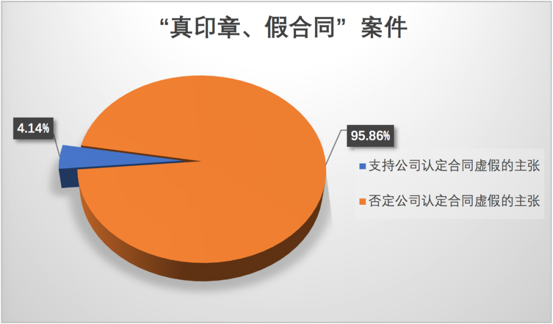 根據(jù)筆者檢索的169例“真印章、假合同”案件,僅在7例案件中法院最終支持了公司的主張,認(rèn)定涉案合同虛假,支持率僅為4.14%。在剩余的162例案件中,法院均以無證據(jù)證明或無足夠證據(jù)證明為由,否定當(dāng)事人對(duì)涉案合同虛假的主張,并以公司印章真實(shí)為由,認(rèn)定合同內(nèi)容真實(shí)有效。