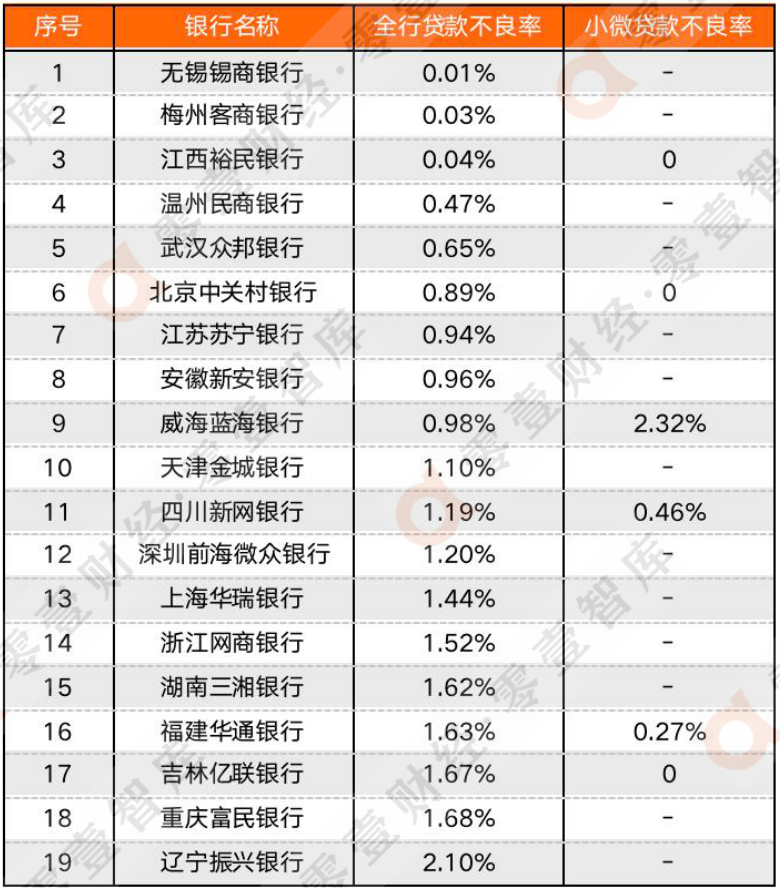 3、 浙江網商銀行和吉林億聯銀行數據來源于新京報、溫州民商銀行根據年報中“普惠小微貸款余額占比”測算所得。4、僅限各家銀行表內數據不含聯合貸。