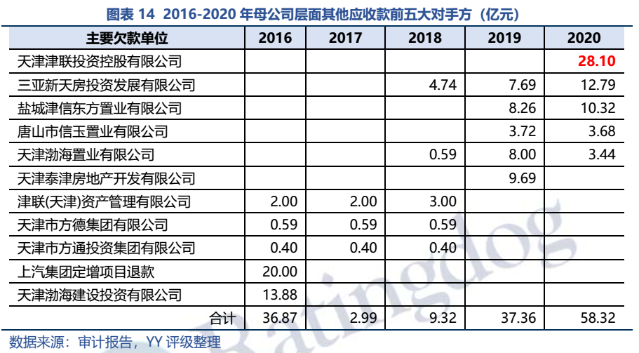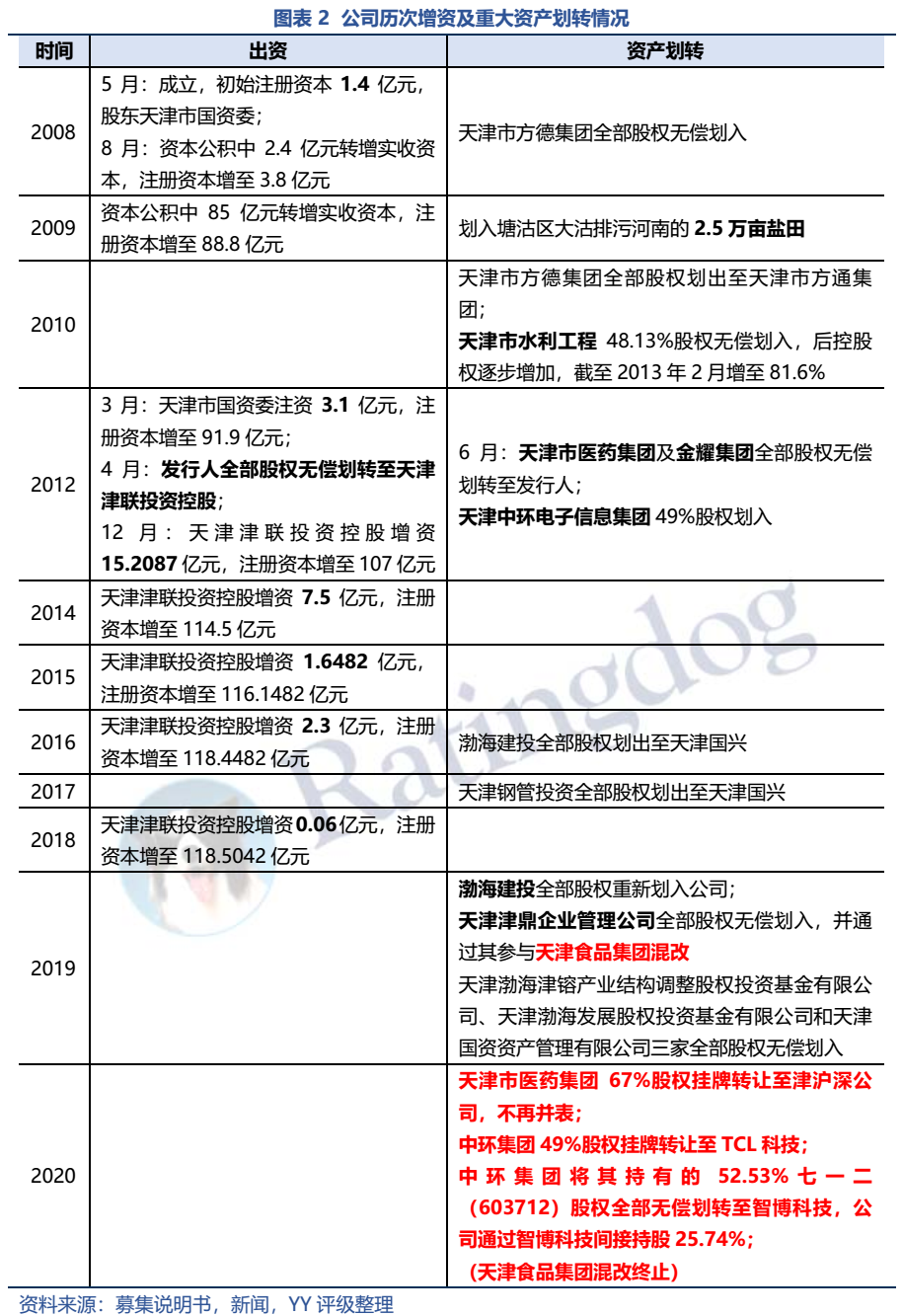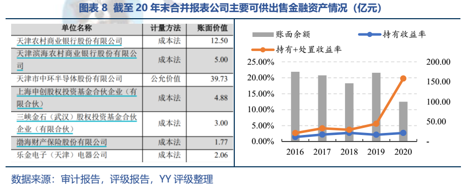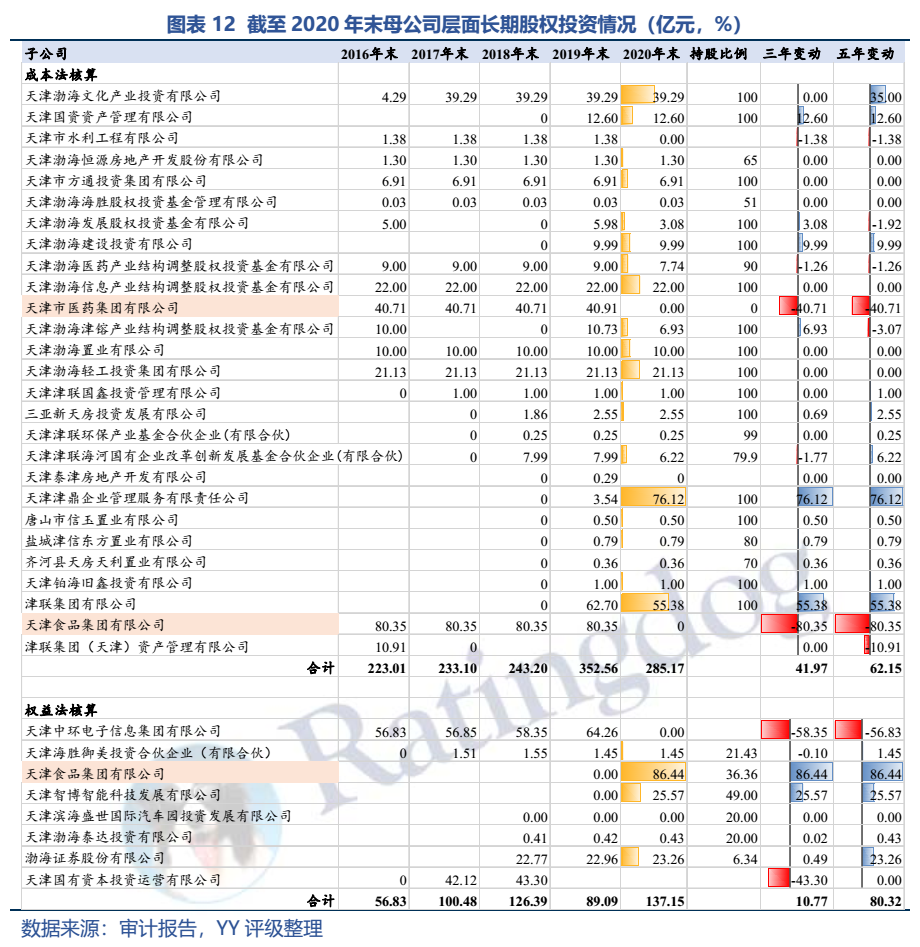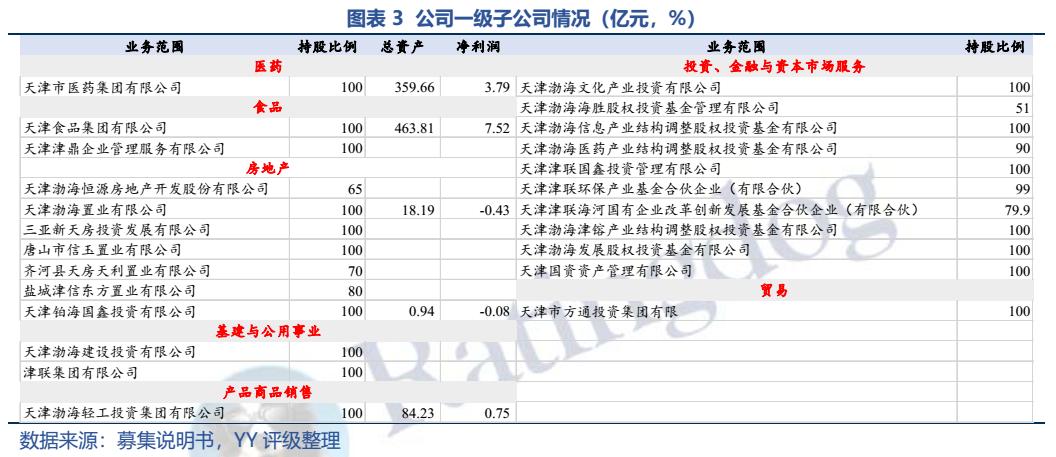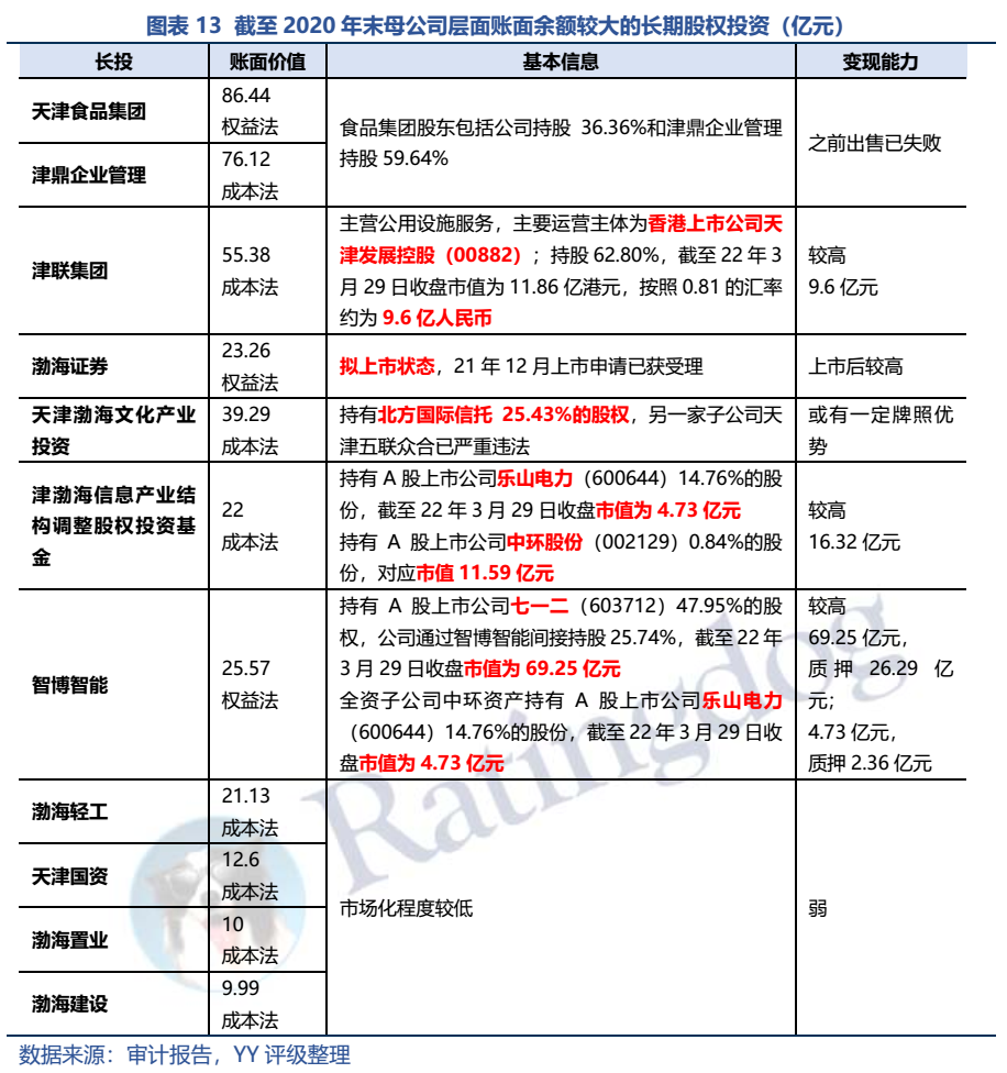 公司為天津市整合級國資運營平臺,子公司股權多依賴劃轉等,實際掌控力偏弱;此外區域為了化解泰達的債務風險,將公司股東津聯投資控股100%股權劃入泰達控股下。公司混改的股權轉讓款約90億元流向泰達,而泰達自身的風險警報尚未解除,對公司資質有一定拖累。