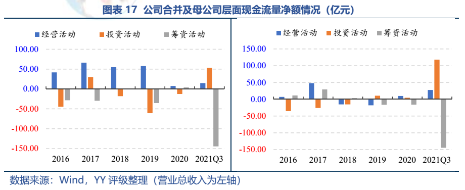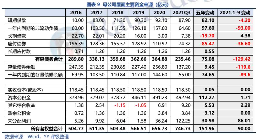 就資產支撐力度而言,母公司層面短期極限變現可覆蓋一年內到期的債券,從債券品種和余額分布來看,潛在的擾動窗口期是1‐3年內期限(88.80億元,含行權),存在較大體量沖擊。