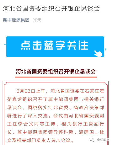 據官微發布,2月23日上午,河北省國資委在石家莊組織召開了冀中能源集團有限責任公司(以下簡稱“冀中能源集團”)與相關銀行懇談會,圍繞落實河北省委、省政府決策部署進行了深入交流。