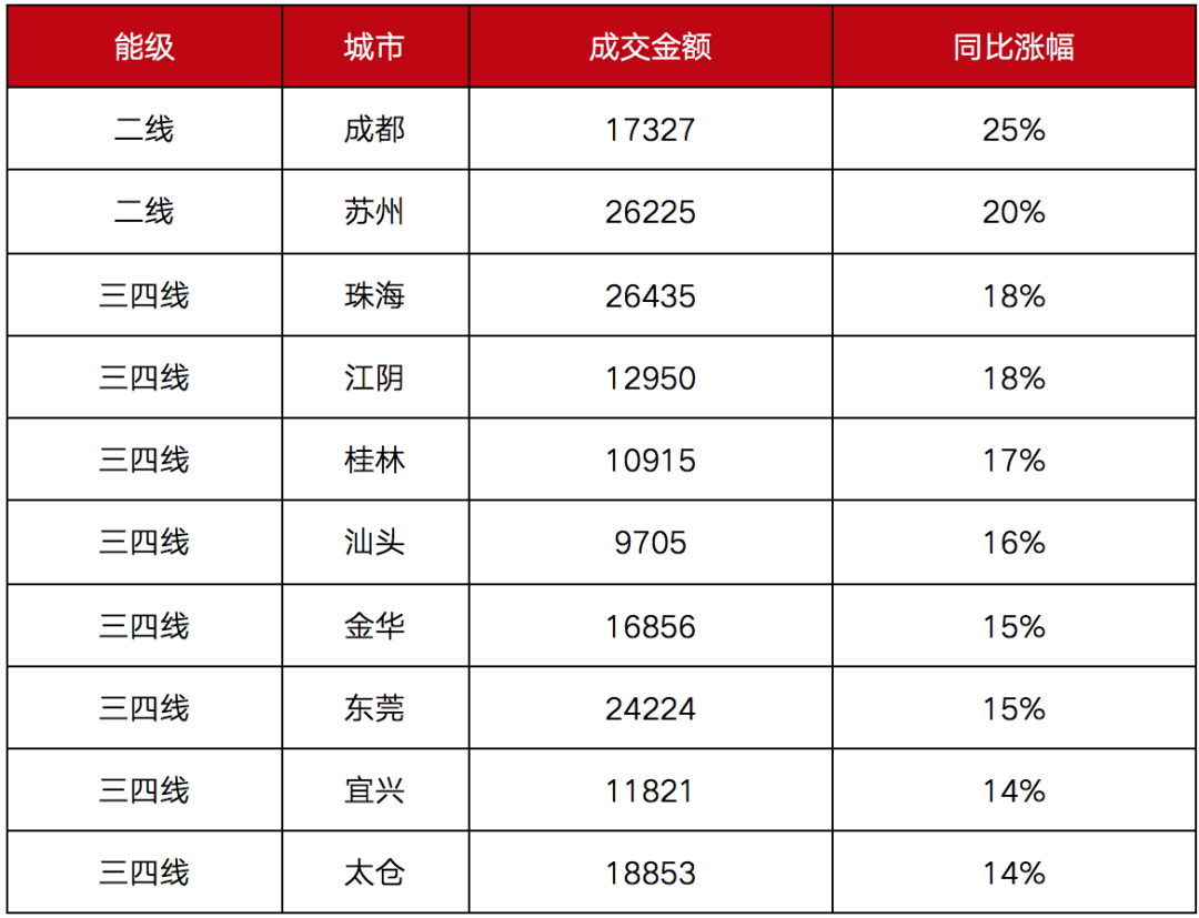 二線城市漲幅最大,成都居首位