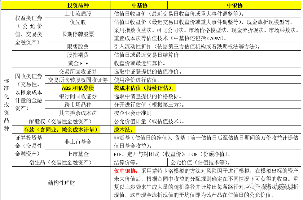 前面分析完,這里進一步梳理不同資管投資品種的估值標準