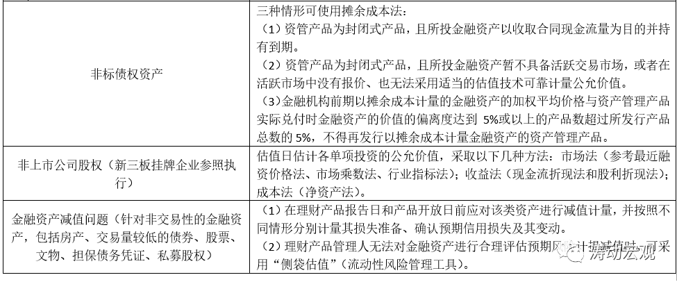 雖然中基協沒有特別提及非標債權資產的估值,但參照資管新規,中基協對非標債權資產的估值基本是默認的。即三種情況下可使用攤余成本法進行估值,這也是銀行理財的一個明顯優勢。