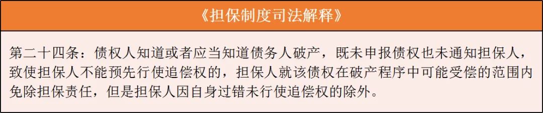 (2)破產債權人怠于行使權利免責:債權人知道或者應當知道債務人破產,既未申報債權也未通知擔保人,致使擔保人不能預先行使追償權的,擔保人就該債權在破產程序中可能受償的范圍內免除擔保責任,但是擔保人因自身過錯未行使追償權的除外。法條鏈接: