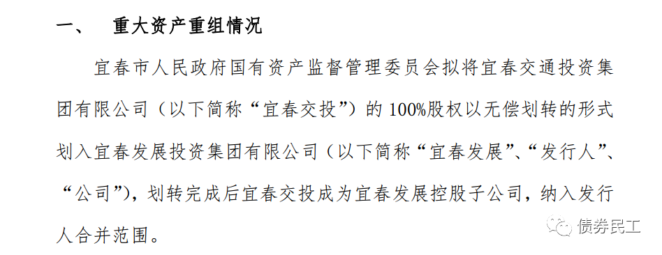 4、2021年12月1日,宜春發展投資集團有限公司公告,宜春市人民政府國有資產監督管理委員會擬將宜春交通投資集團有限公司的100%股權以無償劃轉的形式劃入公司,納入公司合并范圍。