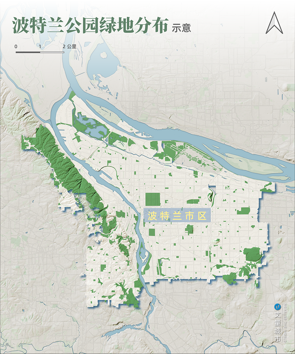 ▼ 波特蘭公園綠地分布示意