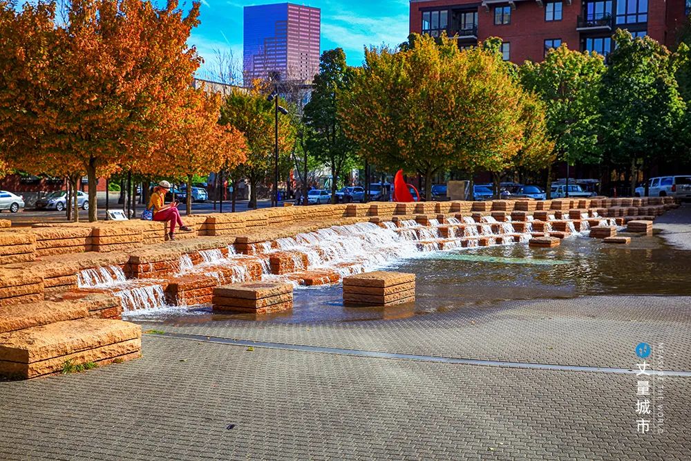 珍珠區繁華地帶的唐納泉水公園,可謂是螺螄殼里做道場,在60m見方的地方,塑造了一個「復雜」的城市公園。收集雨水匯入由噴泉和自然凈化系統組成的天然水景,回收鐵軌舊材料重新利用并建造公園中的「藝術墻」。