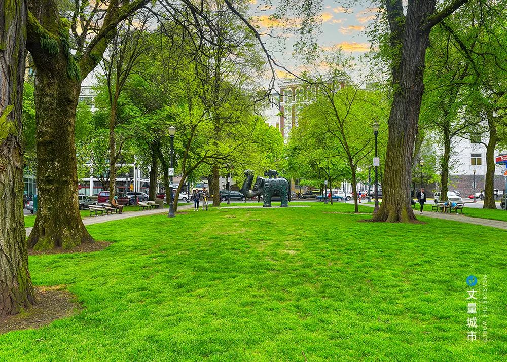以波特蘭州立大學為盡頭的南方公園區,是一個由眾多小街區串聯組成的長條形公園,幾乎占了半個波特蘭Downtown,可謂波特蘭的綠肺。