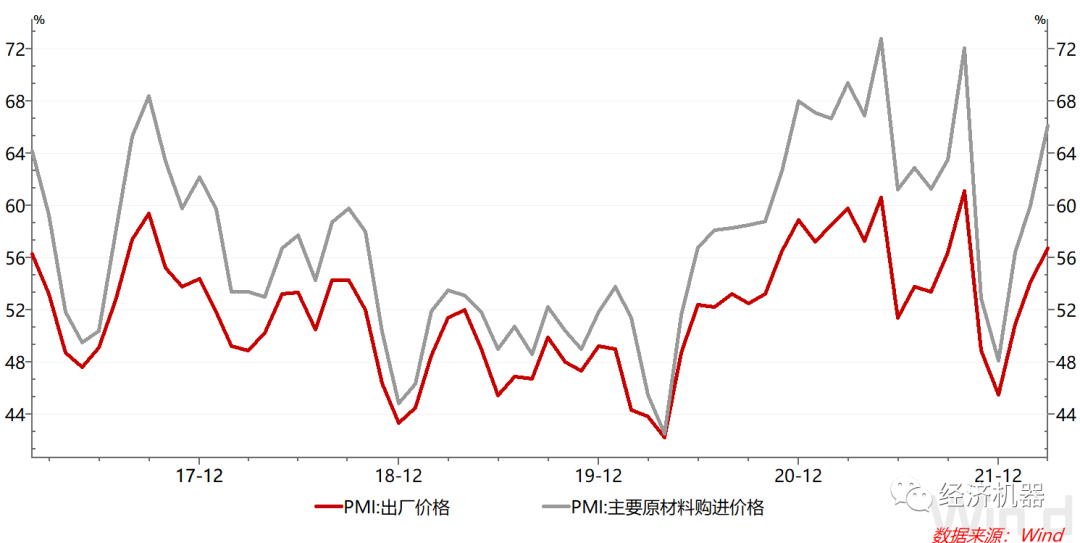 這主要與俄烏沖突有關。俄烏沖突和美歐制裁,導致俄羅斯大宗商品供給幾乎退出了全球市場,導致了大宗商品價格暴漲,其中原油價格一度接近140美元/桶。大宗商品價格暴漲下,我國上游原材料價格不可避免出現上升,對中下游的擠壓短期仍將持續。