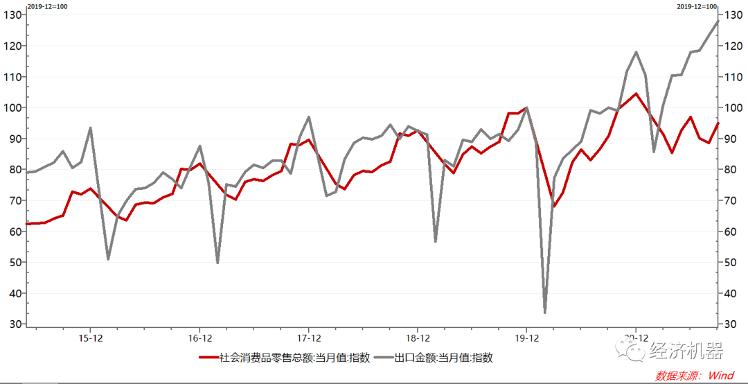 在“滯脹”前景的研判上,市場對明年經(jīng)濟出現(xiàn)周期性放緩的預期較為一致。疫情至今,外貿(mào)出口和房地產(chǎn)投資兩大動力率先復蘇,助推我國經(jīng)濟持續(xù)復蘇;而“消費”和“固定資產(chǎn)投資(制造業(yè)和基建)”復蘇相對滯后。