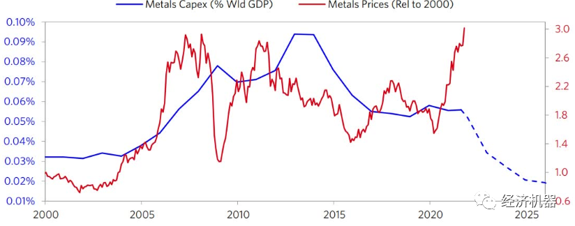 圖13:全球金屬行業(yè)資本支出下降與疫情后價格暴漲