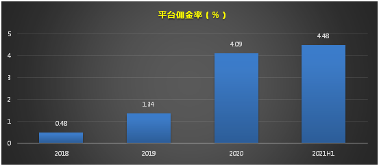 根據平臺收入和線上GMV測算,二季度平臺服務收入的平均傭金率為4.48%,相較于一季度4.25%提升了0.23%,較2020年4.09%增加了0.39%。