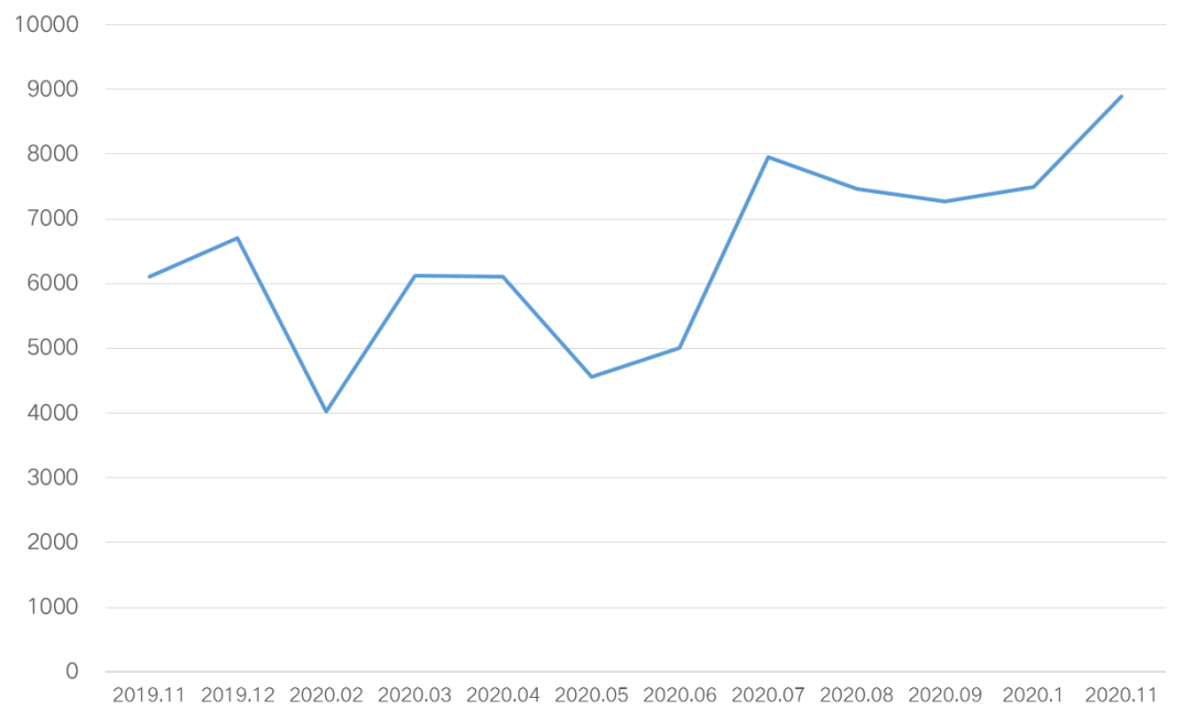 單月來看,11月房地產開發企業土地購置面積為2816萬平方米,同比減少15.6%,土地成交價款為2504億元,同環比上漲均超20%以上。值得注意的是,以此測算,11月全國土地均價達到8892元/平方米,同比增幅達到45.5%。