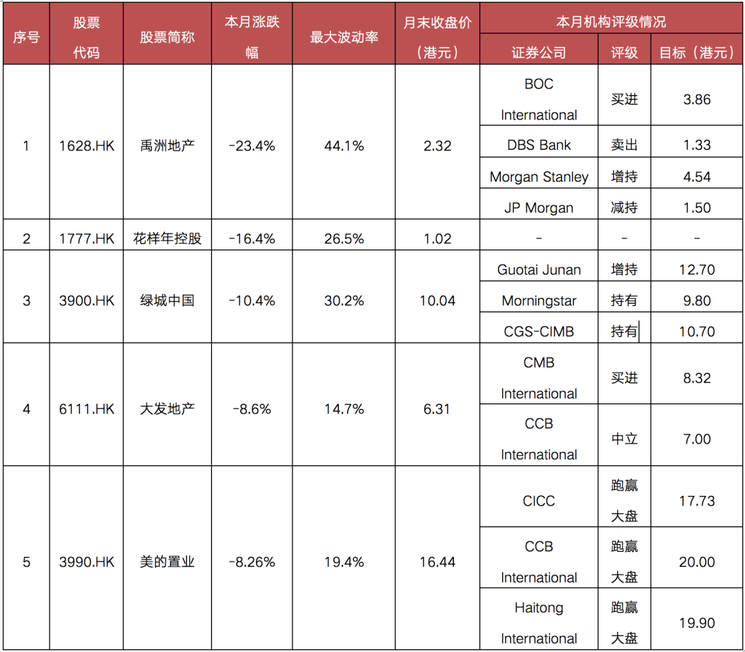 表:3月克而瑞內房股領先指數成分股跌幅TOP5