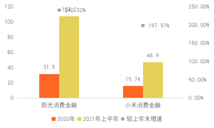 圖 1:2021年上半年陽光消費金融與小米消費金融