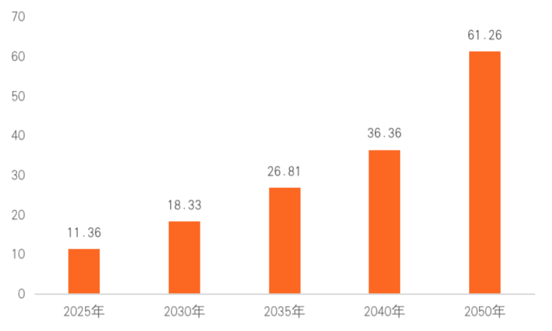 目前,我國養老產業處于發展初期,未來擁有廣闊的發展前景。中國社科院《中國養老產業發展白皮書》顯示,預計到2030年我國養老產業市場可達13萬億元。與此同時,在消費水平絕對值方面,老年人消費水平高于人均消費水平。中國社科院《中國大健康產業發展藍皮書(2018)》顯示,預計到2050年,老年人口總消費將達到61.26萬億元。